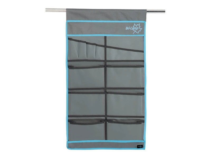 Een compacte multifunctionele 11-vaks organizer. Beschikt over 6 ruime vakken, 1 medium vak en 4 kleine vakken. Eenvoudig en op diverse manieren te bevestigen. Zo kan dit tentschort met de pees worden opgehangen aan een caravanrails, met het klittenband aan een tentstok of met de zeilogen aan haken. De lussen onderaan zorgen voor extra fixatie. Gemaakt van een hoge kwaliteit Two-Tone 600D Oxford Polyester.