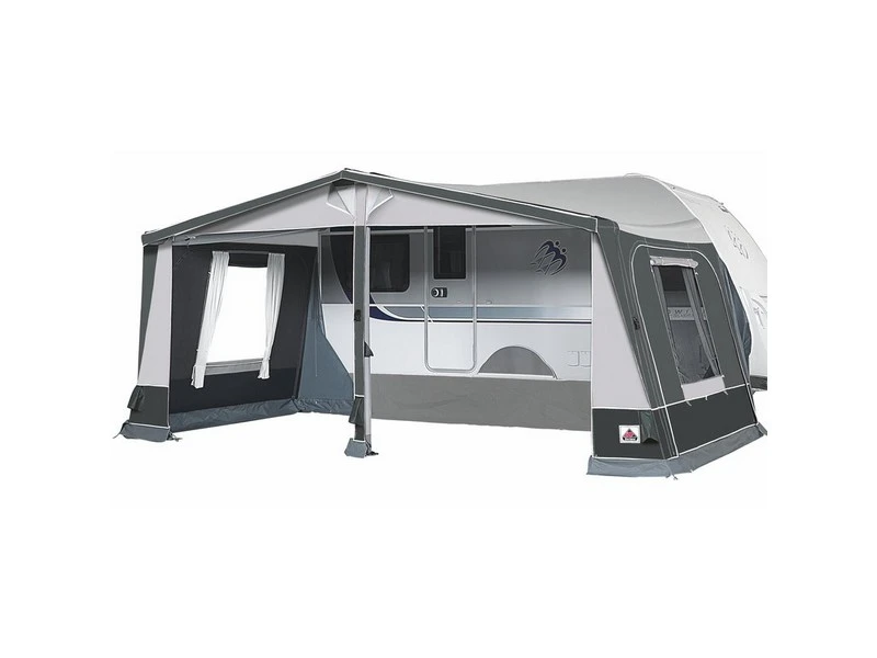 Deze voortent is geheel gemaakt van een extra zware kwaliteit Ten Cate All Season tentdoek. Hierdoor is de Horizon Air All Season ook prima geschikt om een langere tijd gedurende het jaar te gebruiken. Het aan de binnenzijde geprinte dak en de DoremaTex wanden geven de voortent een zeer exclusieve look. Dankzij het Easy Air Frame (EAF) wordt de voortent in enkele minuten opgebouwd. De voortent is standaard voorzien van een dubbele slikrand, onderling uitwisselbare voorpanelen en afgedekte ritsen.