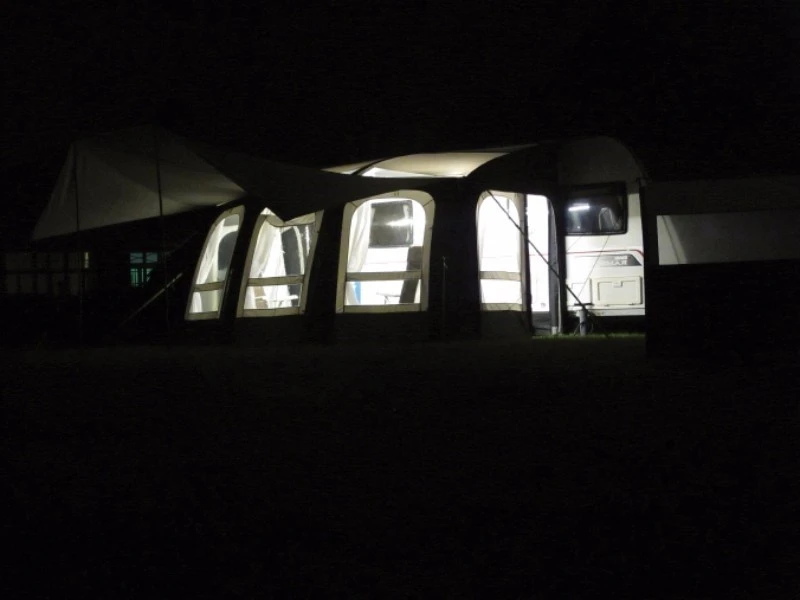 Het Sabrelink ™ verlichtingssysteem zorgt ervoor dat u nooit in het donker bent. Met het systeem kunt u maximaal drie lampen aan elkaar koppelen – dat zijn 450 LED’s. Elk van onze AirFrame voortenten is klaar voor SabreLink ™ en kan lichten aan de AirPoles aan de voorkant en ook aan de middenpalen accepteren. Een Rally AIR 390 zou bijvoorbeeld drie lichten langs de voorkant en nog eens drie in het midden kunnen hebben. Elk systeem wordt bestuurd met een afstandsbediening waarmee u de verlichting kunt in- en uitschakelen en deze ook kunt dimmen. In onze stokken voortenten, kunnen de lichten worden gehangen aan de horizontale palen met behulp van de ‘S’ haken.