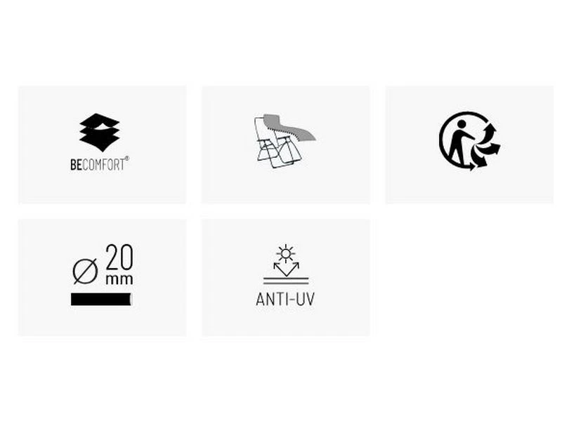 – Clipbevestiging: deze door LAFUMA-gepatenteerde innovatie biedt een steviger comfort, een perfecte ondersteuning van de rug, een duurzame weerstand en zorgt ervoor dat het vast